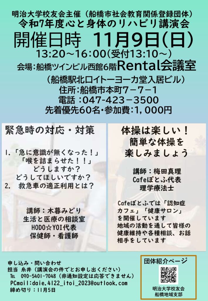 今回の明治大学校友会主催の講演会は、JR船橋駅の目の前、イトーヨーカドー6階と交通の便も良いです。