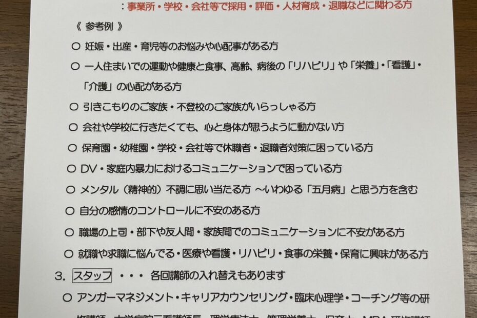 2024 年度 第3回「心と身体のリハビリ・心の栄養づくり」コミュニケーション講演会参加者募集